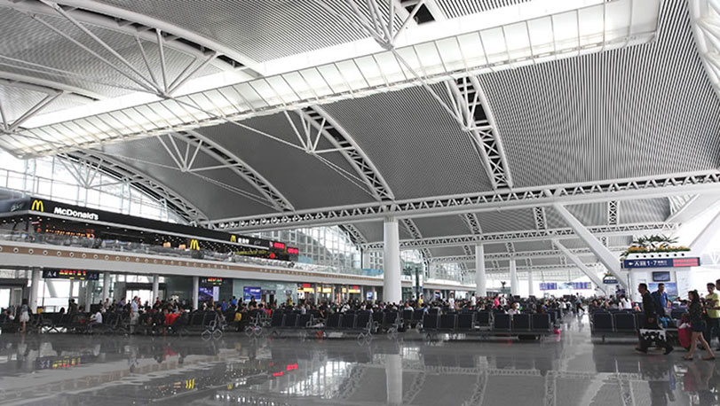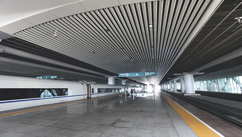 廣州站位于廣州市番禺區(qū),2009年建設(shè),寶鋼熱鍍鋅彩涂做屋面板,顏色為深棕褐,涂層品種PE聚酯,鍍鋅量180克/平方米,牌號(hào)為TDC51D。