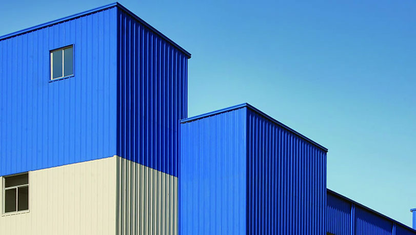蕪湖美智空調設備位于蕪湖市經濟開發(fā)區(qū),建成于2010年。是一家生產空調、冰箱的家電企業(yè)。屋面采用寶鋼鍍鋁鋅光板制造,牌號為S350GD+AZ,鋁鋅重量為165克/平方米。墻面采用寶鋼鍍鋁鋅氟碳彩涂鋼板,顏色為白灰、海藍,鋁鋅層重量150克/平方米,牌號TS300GD+AZ。