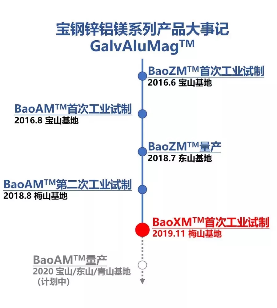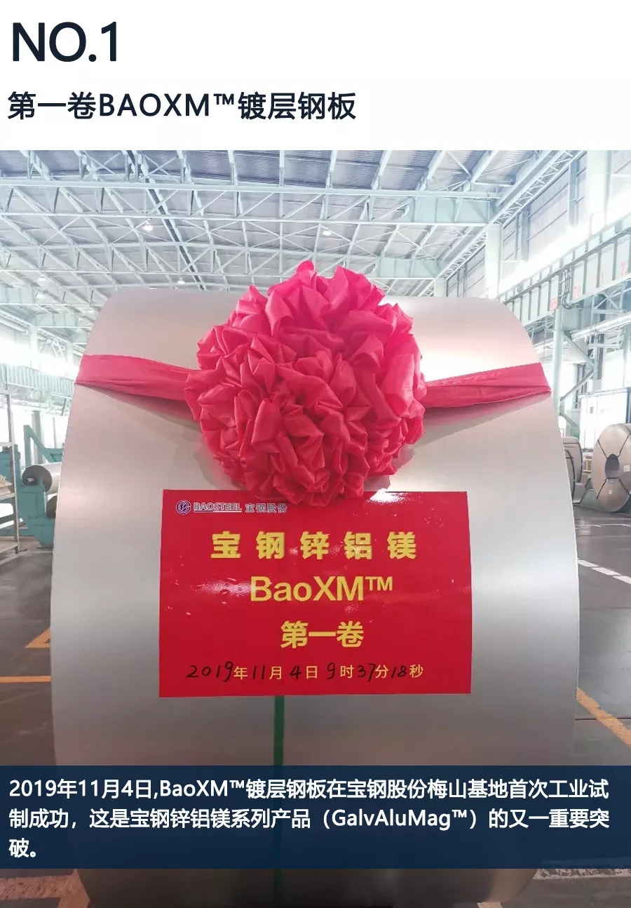 BaoXM鍍層鋼板在寶鋼股份梅山基地首次工業(yè)試制成功,這是寶鋼鋅鋁鎂系列產(chǎn)品(GalvAluMag?)的又一重要突破。