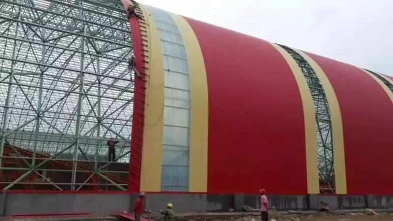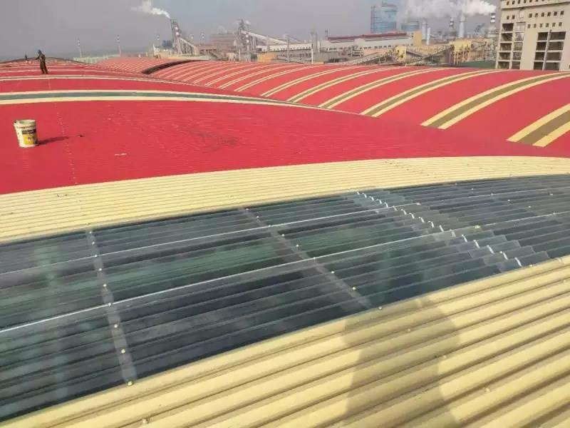 前期使用其他廠家彩涂產(chǎn)品,短時間內(nèi)多次發(fā)生銹蝕穿孔。后經(jīng)與寶鋼黃石公司聯(lián)系并邀請進(jìn)行現(xiàn)場走訪,發(fā)現(xiàn)此批彩涂產(chǎn)品使用在煤氣發(fā)生爐區(qū)域,車間內(nèi)不僅屬高溫、高濕環(huán)境,還有二氧化硫等還原氣氛,鍋爐排放粉塵顆粒附著腐蝕較大,對產(chǎn)品耐蝕性提出更高的要求。經(jīng)與業(yè)主溝通,選用鍍鋁鋅基板,并提升背面膜厚及涂料種類(環(huán)氧改為氟碳涂層,背面漆膜≥20um),經(jīng)5年時間跟蹤,漆膜完整,大大增強(qiáng)了使用壽命,降低更換周期,得到業(yè)主認(rèn)可。使用時間2013年,共計使用400噸。